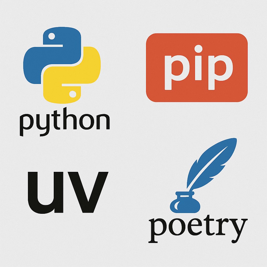 pip, Poetry, uv: 파이썬 패키지 매니저 삼파전"requirements.txt가 늘어날수록 디버깅이 아니라 고고학 같다"는 말이 여전히 회자될 정도로 환경 관리는 끝나지 않은 과제입니다.1. 각 도구의 핵심 철학pip: 표준 패키지 설치 도구. requirements.txt와 venv로 구성하는 가장 단순한 흐름입니다.Poetry: pyproject.toml 기반 의존성 선언과 잠금 파일(poetry.lock)을 제공하며, 프로젝트 스캐폴딩·퍼블리시까지 관리합니다.uv: Astral이 공개한 초고속 패키지 매니저로, pip와 pip-tools를 대체하면서도 설치 속도를 Rust 구현으로 크게 끌어올립니다.2. 기능 비교 한눈에 보기항목pipPoetryuv설치 속도기본안정적이지만 lock 검증 ..